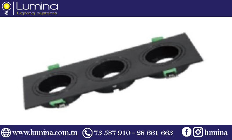 - Tout d’abord, ce spot encastrable triple noir s’intègre discrètement dans votre faux-plafond moderne.