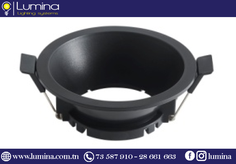 - Tout d’abord, ce spot rond fixe en polycarbonate noir mesure 8,5 cm de diamètre extérieur.